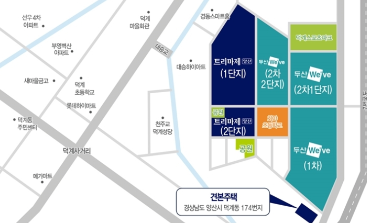 게다가 주변에 위치한 이마트 트레이더스, 롯데마트, 덕계우체국 등 병원·은행·관공서 등 풍부한 생활 인프라를 누릴 수 있고, 천성산, 불광산, 용천산, 덕산 공원을 가까이에서 누릴 수 있으며, 웅상 체육공원과 덕계 스포츠파크를 비롯해 웅상 센트럴파크가 예정되어 있는 것이 특징입니다.